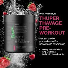 Looking to buy pre-workout for men and women? Thuper Thavage is everything you could possibly want in a pre. With 6,400 mg of Beta Alanine, 6,000mg of L-Citrulline, 5,000mg of Creatine, and 400mg of Caffeine in each scoop- nothing will stand in your way of dominating your workout.